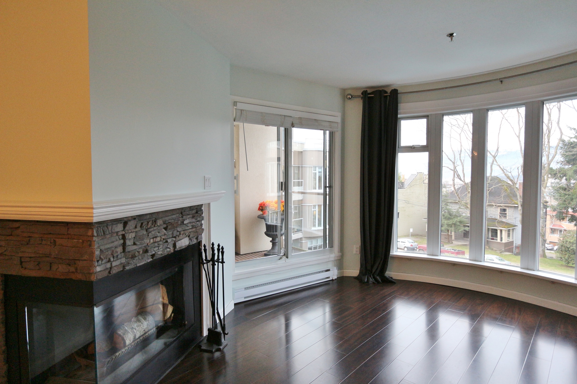 FEATURES: The Galleria building situated in the perfect Fairview Slopes location. This unit features 2 bedrooms and 2 bathrooms with fantastic, expansive views of the city and mountains! Fully renovated with S/S appliances, quartz counter tops, laminate flooring plus lots of custom work. This unit also features an oversized master bedroom with a huge closet, good sized balcony, beautiful wood burning fireplace and in-suite laundry. Also comes with a large storage locker and a gym in the building.