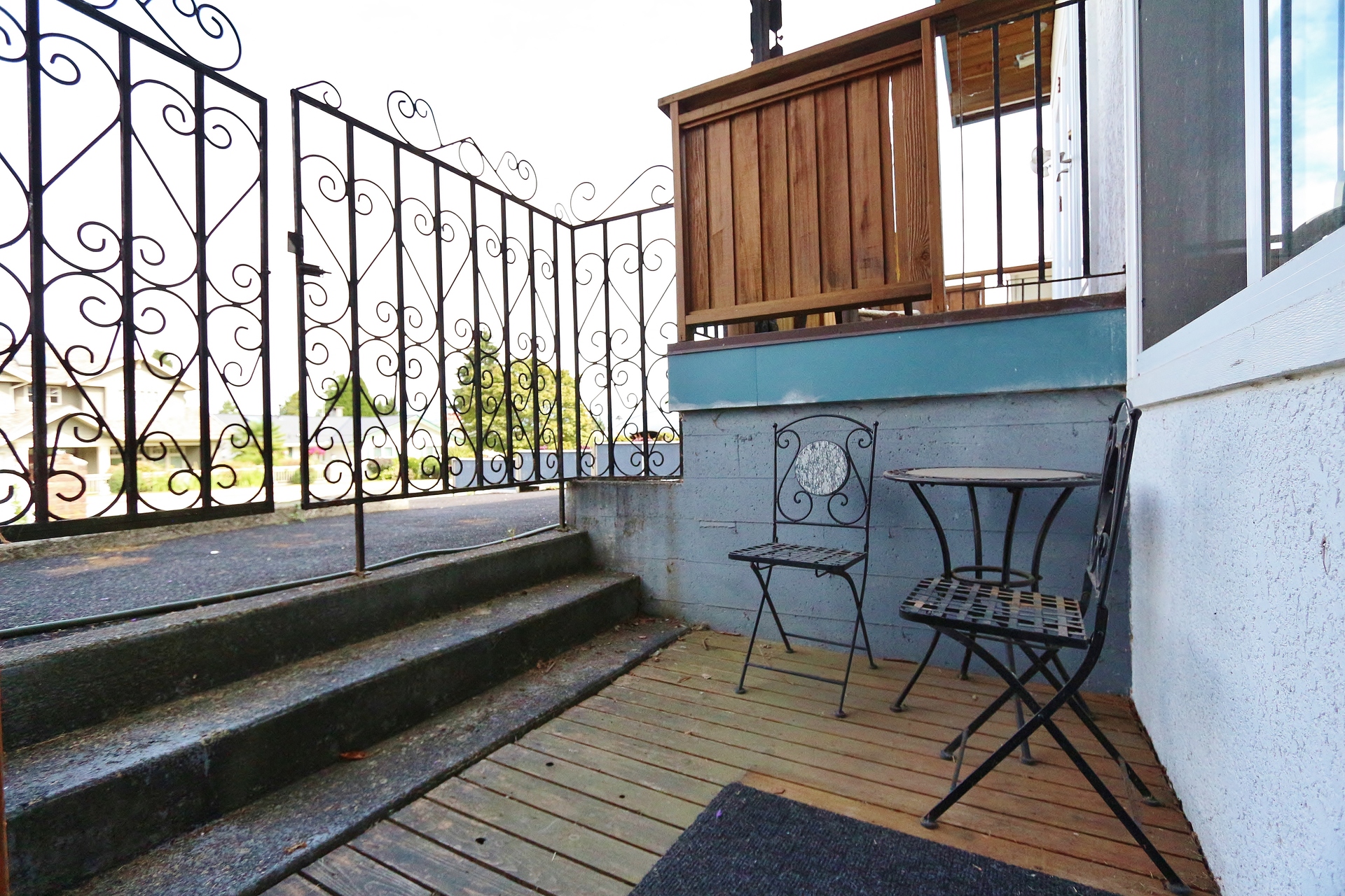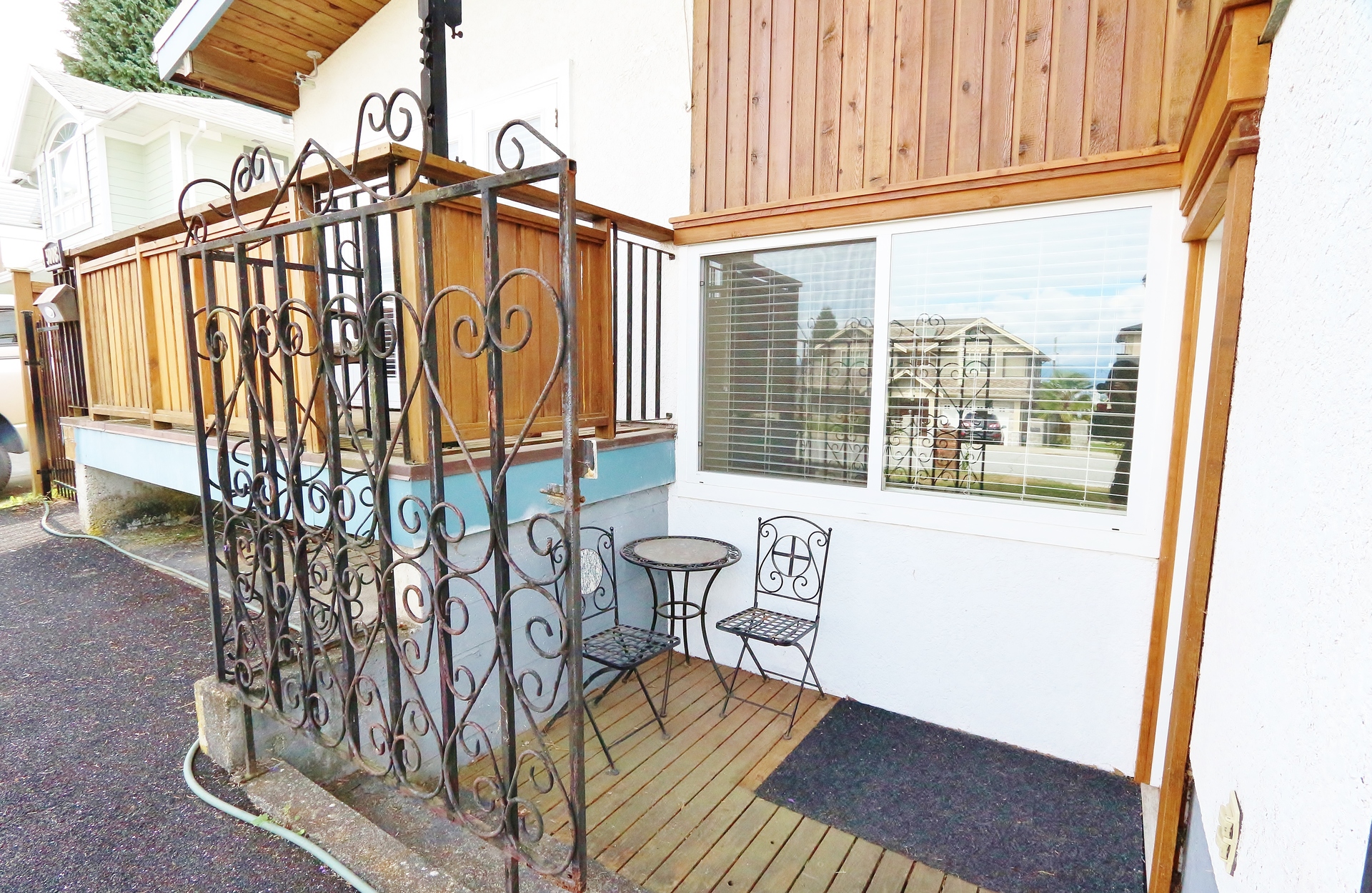 FEATURES: Don't miss this unique property! This 2 level, 2 bedroom apartment is situated within a house - enjoy the benefits of house living without the maintenance. This home is very spacious with over 1200 sq. ft. of living space and features 2 large bedrooms, 2 bathrooms, insuite laundry & storage, 3 outdoor spaces, and a fantastic open concept kitchen/living and dining with vaulted ceilings! Each floor has 1 bedroom and 1 bathroom and its own (ground level) entrance. The main entrance is around the side of the house which is gated and private to this apartment and offers enough space for a bistro table and chairs and a BBQ. The main living space is located on the upstairs floor and the bedroom has french doors out to a North facing deck with North Shore Mountain views. Downstairs bedroom offers a ground floor patio off the front, entry way shelving and over-sized luxurious bathroom with high-end tile, deep soaker tub, heated floors and built in linen closet. The laundry room has a bonus storage space under the stairs. There are 3 types of heating in this home with radiant heat, electric heat and a gas fireplace so use what you prefer as unit has its own meter. Free street parking out front. Unit currently has a few furniture pieces including a bed, bedside tables, dresser, tv etc. - these can stay or be taken out if not needed.