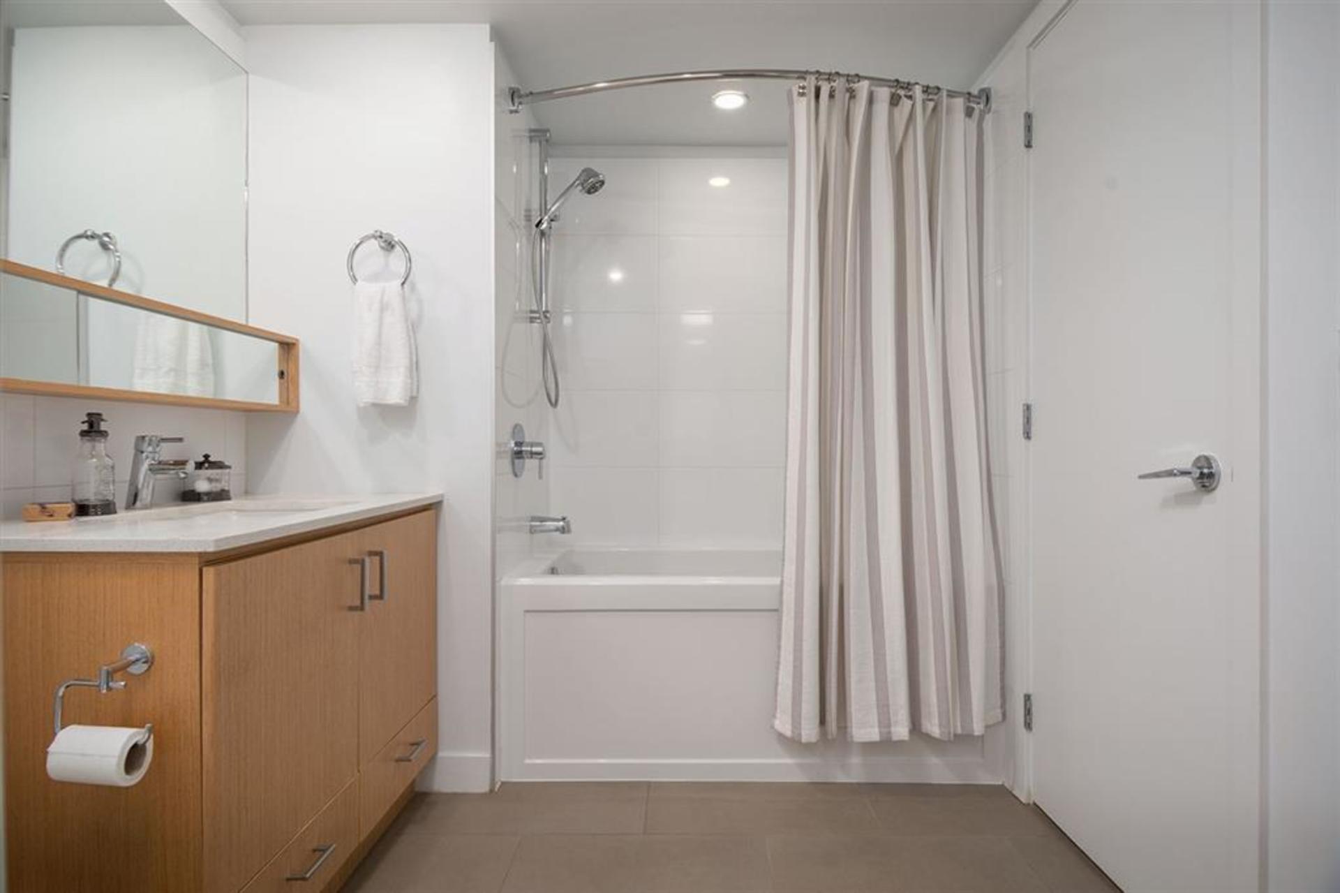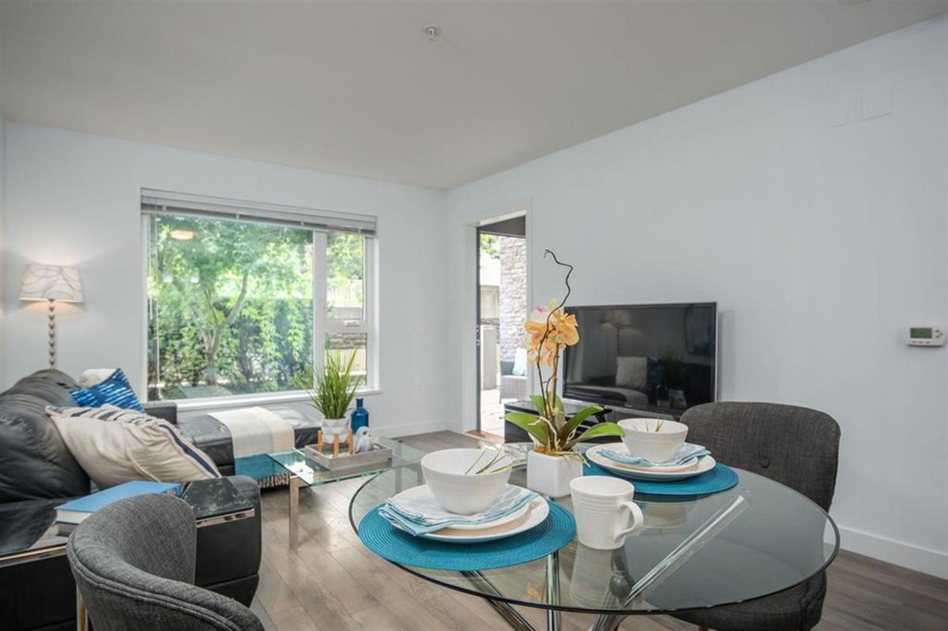Spacious 668 Sq ft ground floor unit at Orizon On Third. Built by Intracorp in 2014, & located in the heart of vibrant LOLO - steps from shopping, restaurants, pubs, & the Pier/Quay. Enjoy outdoor living on the patio, & gated private entrance. This gorgeous open concept layout features a modern kitchen with stainless steel appliances, quartz counters, in-suite laundry, large bright windows, spacious bedroom, & luxurious bathroom. If you like to entertain, you'll love the massive rooftop sundeck/patio - fully furnished in style with dining table, gas BBQ, patio umbrellas, outdoor sofa & cozy fire pit - all overlooking the fantastic ocean, & city views.