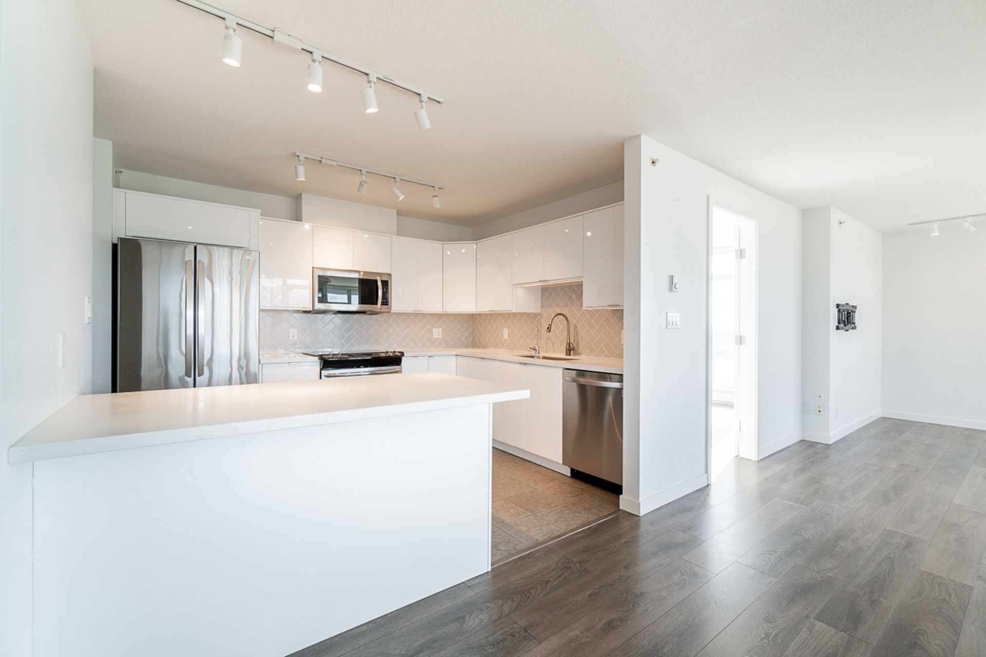 Welcome to a home that transcends the ordinary. This 3-bedroom, 2 full bath corner unit encapsulates space, style, and comfort in 1415 square feet of exquisite living. The allure of beautiful sunsets becomes a daily experience, whether viewed from the inviting living room or the expansive balcony. Thoughtfully renovated, this unit boasts granite countertops in the kitchen and bathrooms, an ode to elegance. Stainless steel appliances and hardwood flooring seamlessly blend function and beauty, an a walk-in pantry enhances the culinary experience.. Adding to the allure, two side-by-side parking spots ensure convenience. The location is beyond prime, with the skytrain mere steps away, delivering connectivity and ease to your doorstep.