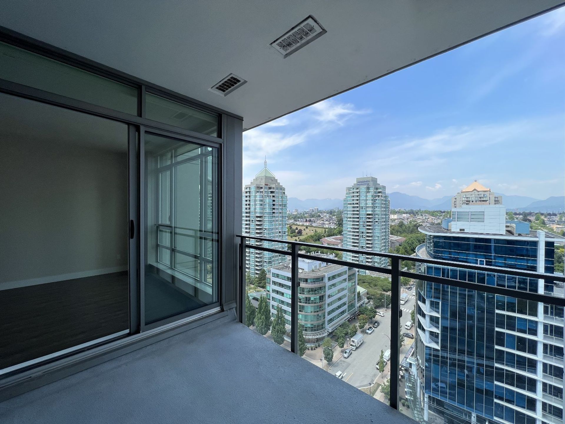 Welcome to the SOLO DISTRICT in the HEART of Brentwood. This is a large one bedroom and den, with a covered balcony and northern mountain views. This unit offers an open kitchen with stainless steel appliances, gas cooktop, built-in oven, quartz counters and Italian cabinetry. Floor to ceiling windows and engineered hardwood floors throughout. Lots of closet space, full size laundry and a bonus workstation are just some of the extra details by this reputable developer. Building Amenities include a gym, sauna, steam room, guest suite, concierge, covered BBQ area and entertainment lounge. Rent includes geothermal heat, hot water & AIR CONDITIONING.