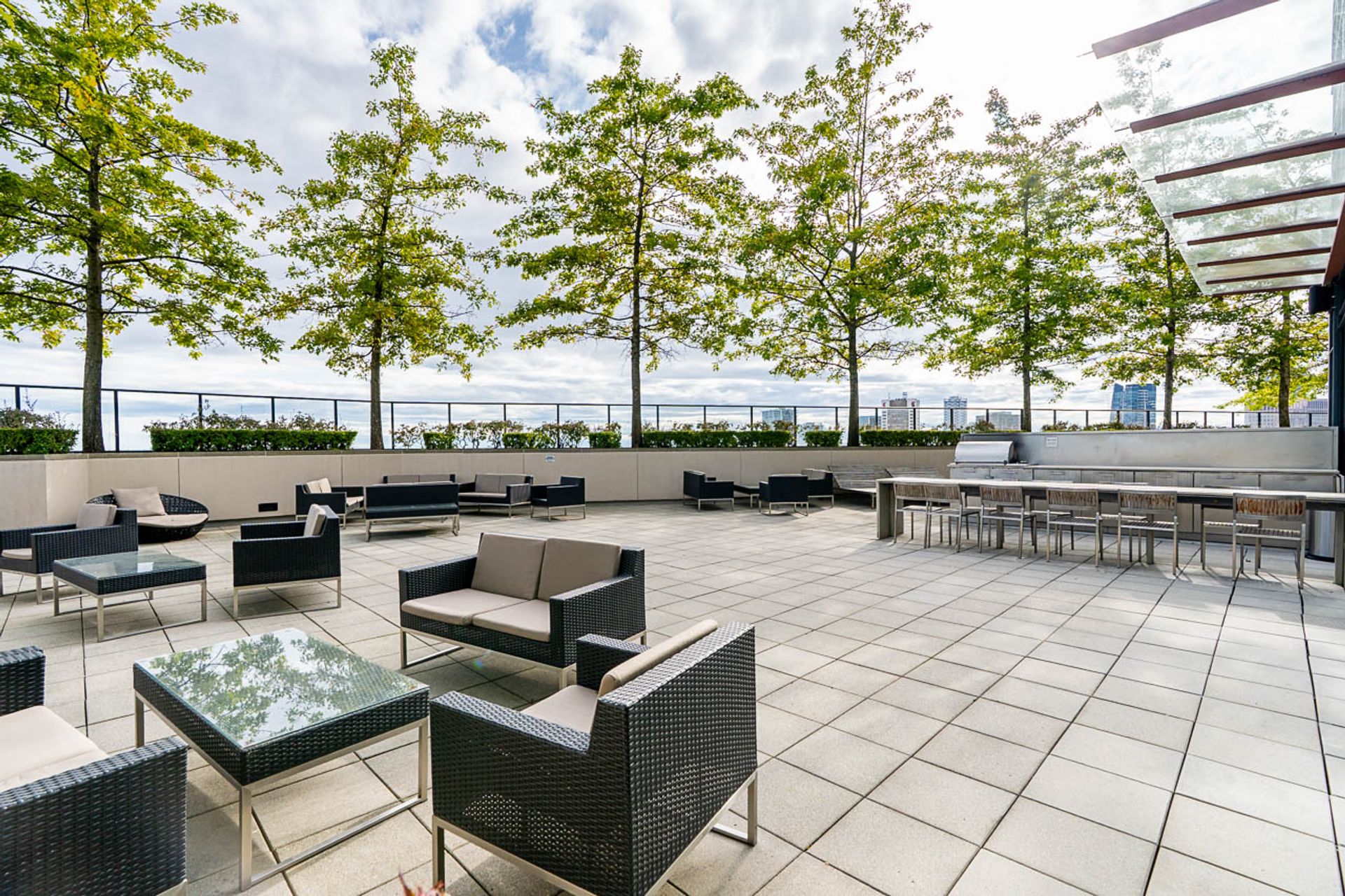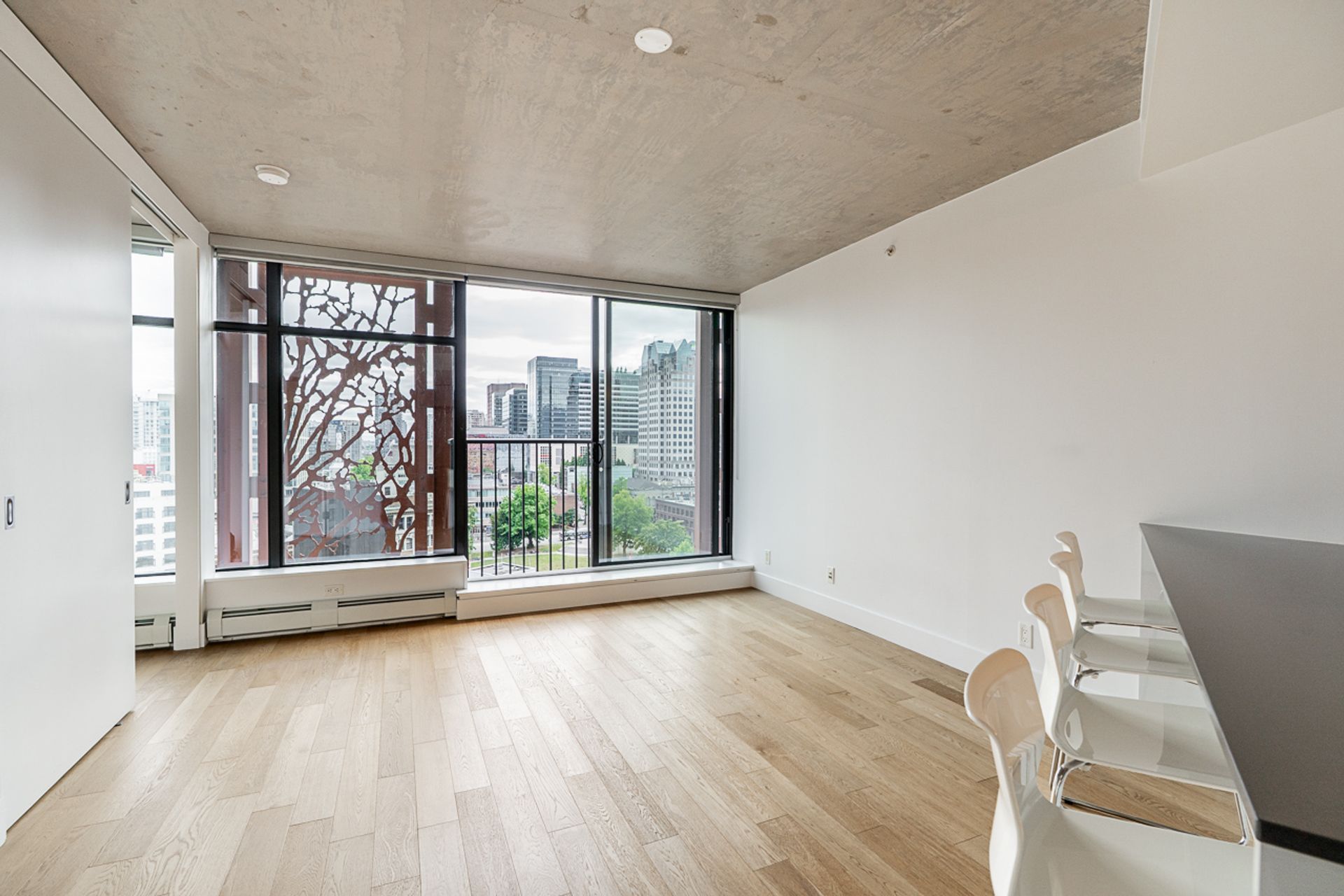 Open layout living/dining room with COMPLETE downtown views - Ideal location steps to everything, including Grocery, Skytrain, Shopping and more right on your doorstep. Juliet balcony. UNREAL building amenities with rooftop outdoor patio, Gym with water/mountain views, Hot Tub, and common room.